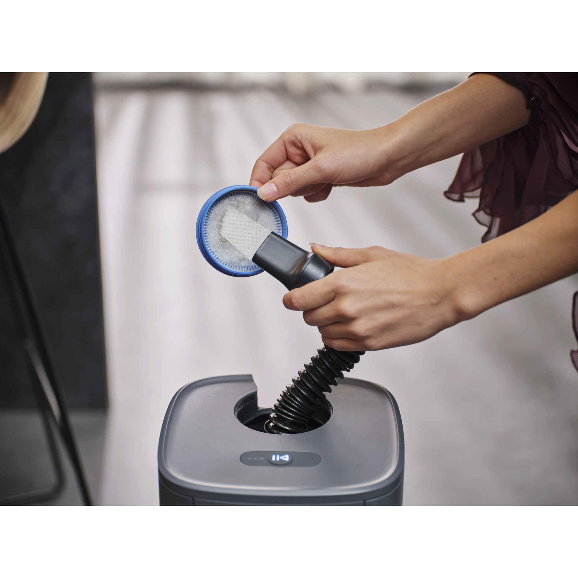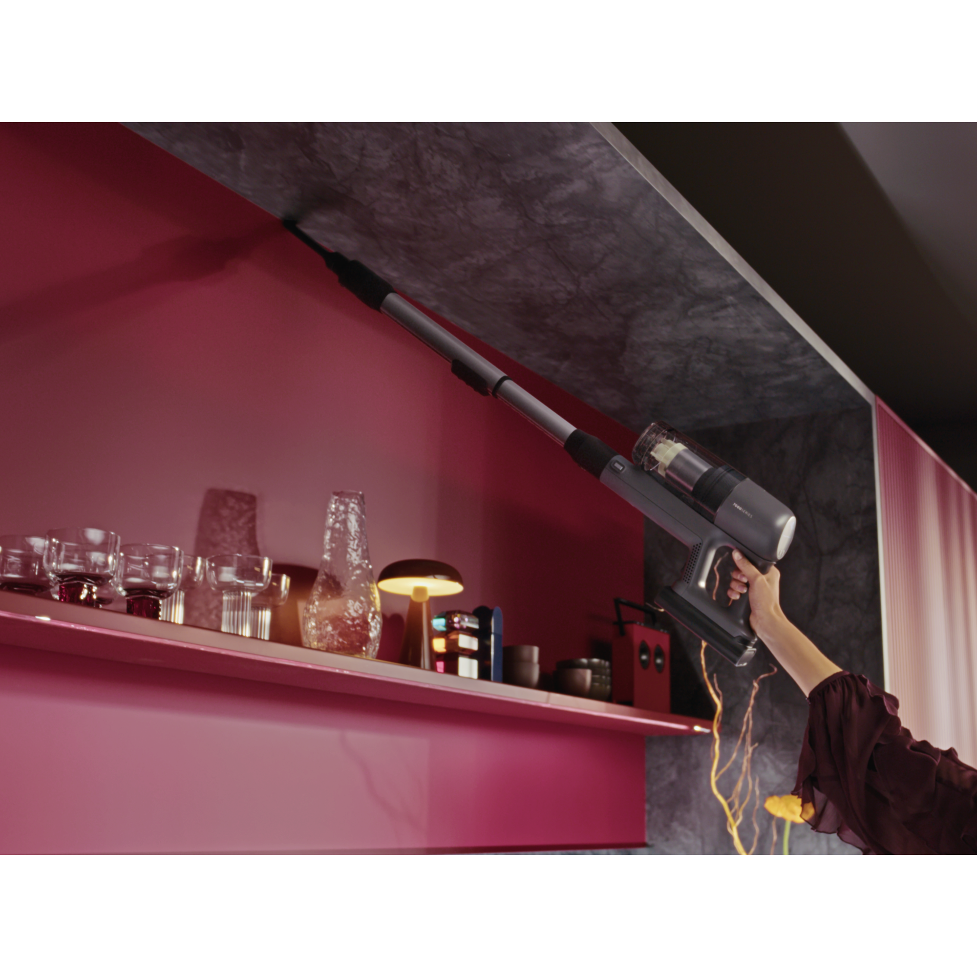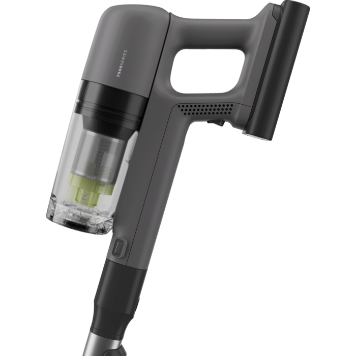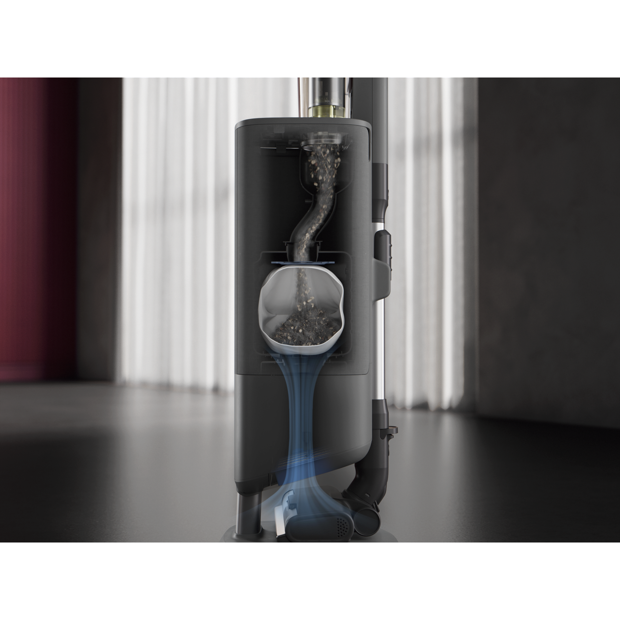 Aspiradora sin cable versátil de la Serie 7000 con estación de vaciado, con batería de 21,6 V, tiempo de carga 4,5 horas, Autonomía de 9/20/40/50 min (3 velocidades), capacidad del depósito 0,3 litros, Cepillo AllFloor Multisuperficie, 4 accesorios, cepillo BedProPower™, color Gris Oscuro