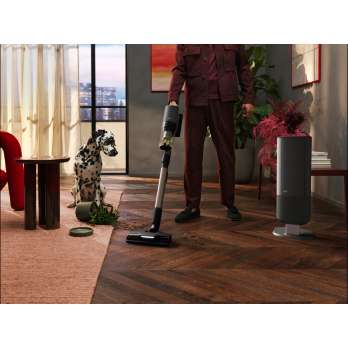 Aspirador sin cable versátil de la Serie 8000 Animal, 25.2V Batería Li-Ion HD 4.0 Ah / 100 Wh, Autonomía hasta 90 min (3 velocidades + modo AUTO), Estación de vaciado, 5 accesorios y base de carga, color gris
