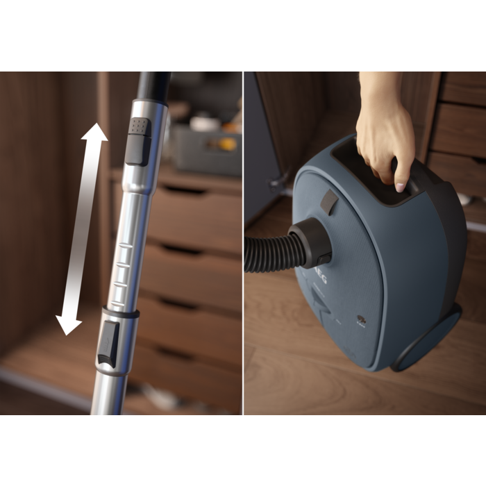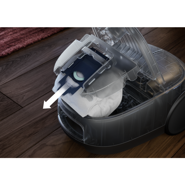 Aspiradora con bolsa de la Serie 6000 Clean de 850 W y 73 dB(A) con 9 metros de cable y 12 metros de radio de acción, con filtro Hygiene 12 lavable, bolsa S-bag® Classic Long Performance de 3,5 litros de capacidad, cepillo DustMagnet Silent, cepillo Parketto Pro, accesorio Mini 3 en 1