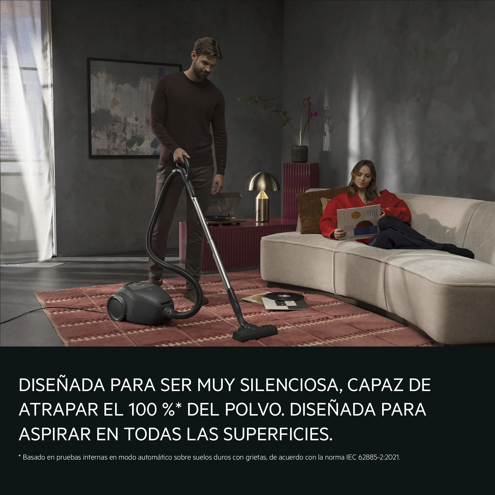 Silenciosa por diseño y capaz de recoger hasta el 100 %* del polvo