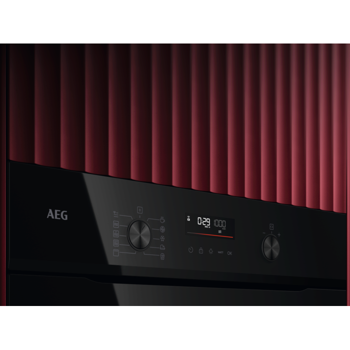 Microondas compacto integrable de la Serie 5000 Microondas con Display LED Explore, 44 litros y 45 cm de alto, microondas de 1900 W y Grill de 1700 W, 9 funciones, mandos escamoteables, parilla grill, puerta de 4 cristales, cristal negro con borde biselado y tirador negro anodizado