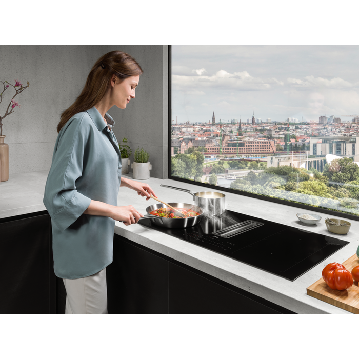 Las placas de inducción con campana integrada AEG EcoLine se seleccionan en función de su máxima eficiencia energética.