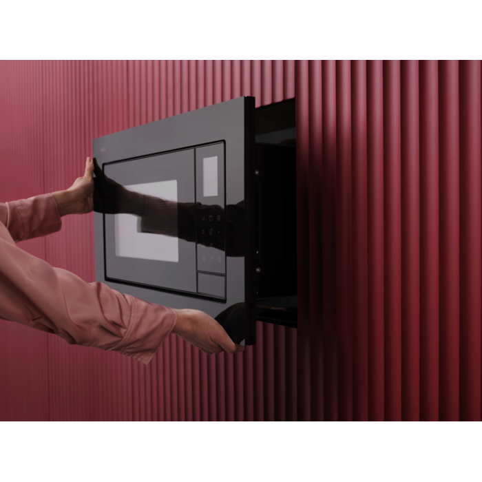 Microondas de la Serie 6000 de integración total y 17 litros con display LED, panel táctil con programas de cocción, microondas de 800 W con grill de 800 W, apertura electrónica, plato retornable de 27,2 cm de diámetro, kit de cocción a vapor, marco integrado, cristal negro