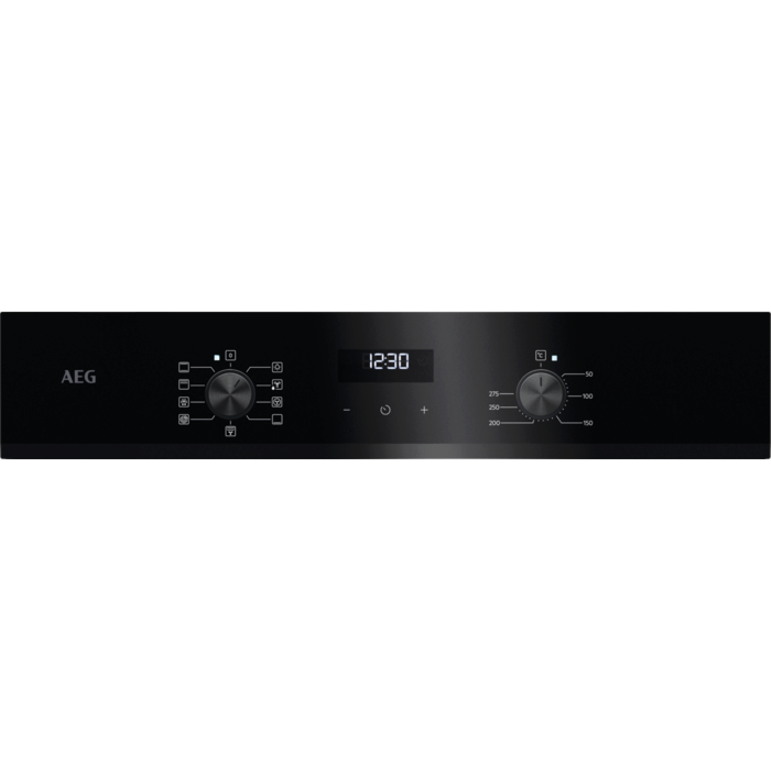 Horno multifunción Serie 5000 SurroundCook con Display LED de 72 litros, con limpieza AquaClean, 9 funciones, mandos escamoteables Inox, puerta de 2 cristales, cristal negro con borde biselado y tirador negro anodizado