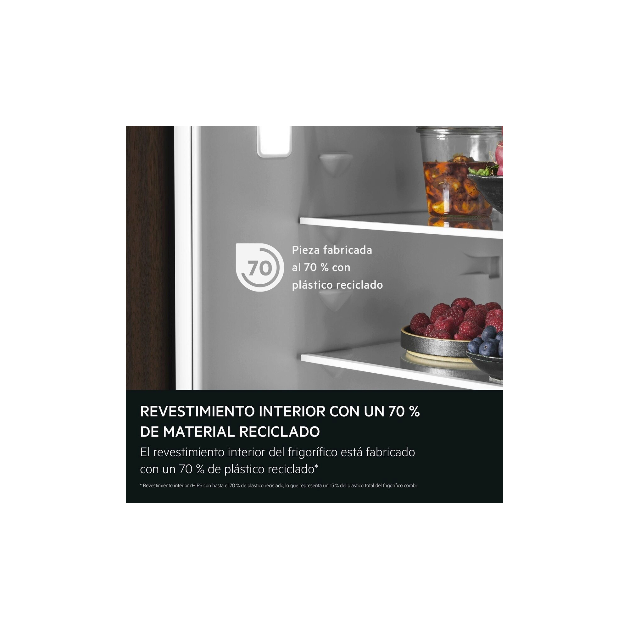 *Revestimiento interior hecho con hasta un 70 % de plástico reciclado (HIPS), lo que supone el 13 % del plástico total del frigorífico
