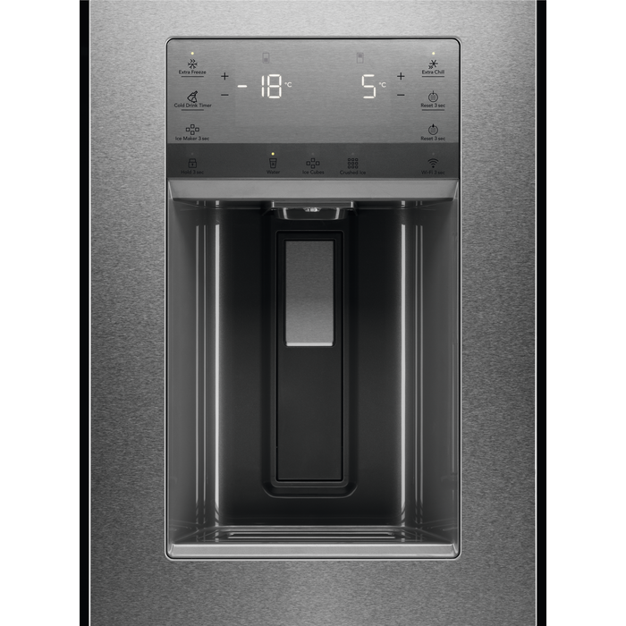 Frigorífico Combi French Door de la Serie 9000 MultiSwitch de 178,2 cm x 91,3 cm, No Frost Multiflow, display LCD en puerta, puerta CustomFlex, cajon regulable (de -18°C +7°C), dispensador de Agua y Hielo, Puertas Planas INOX