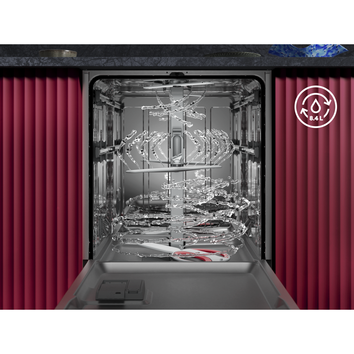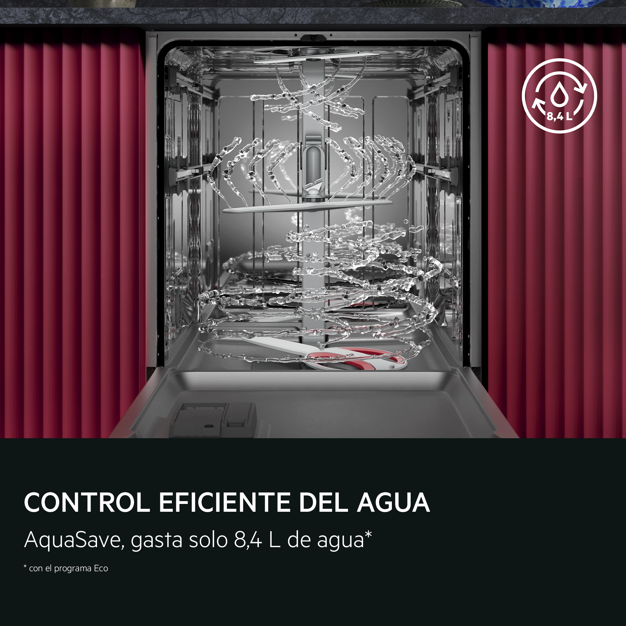 Ahorra agua cada vez que laves tu vajilla. Eficaz. Potente