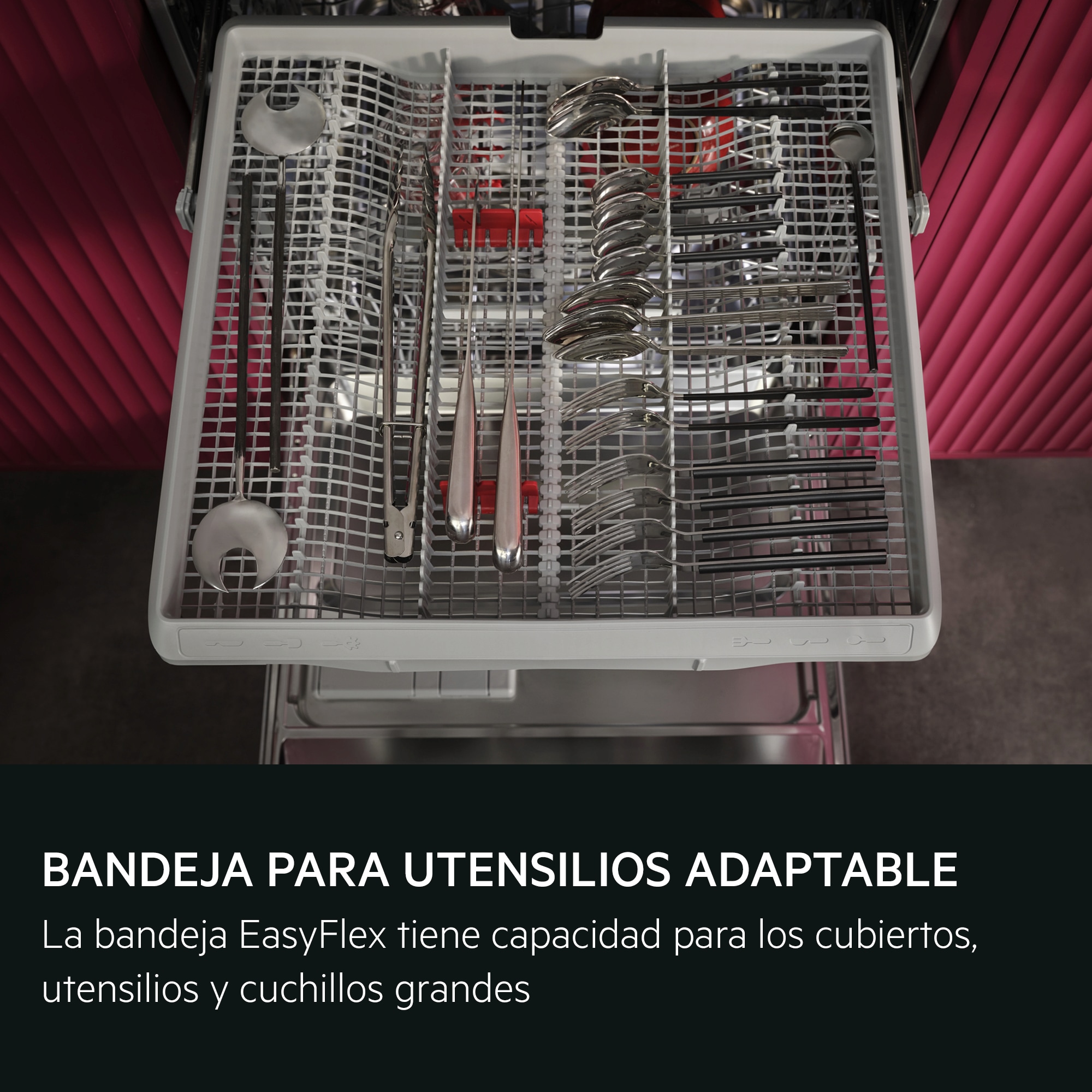 Espacio versátil para lavar cómodamente los cubiertos y utensilios de cocina