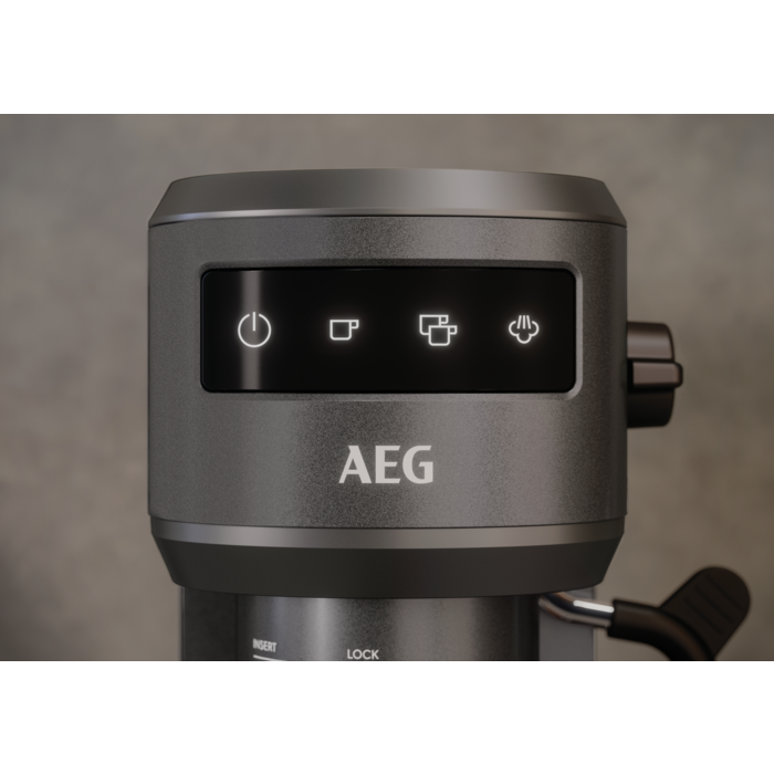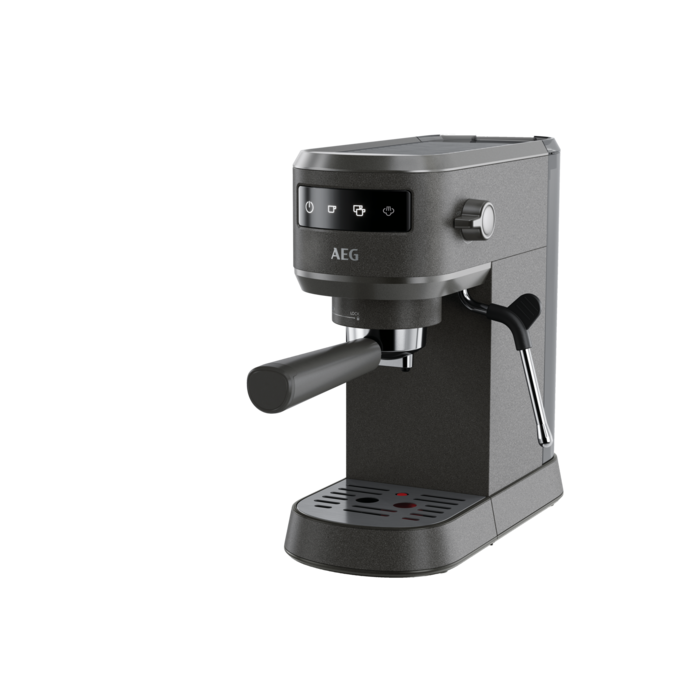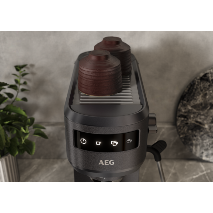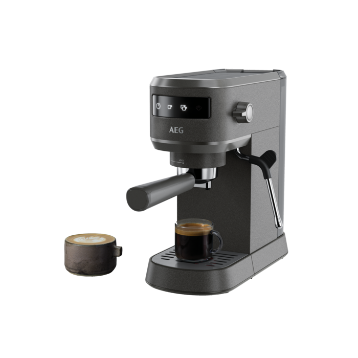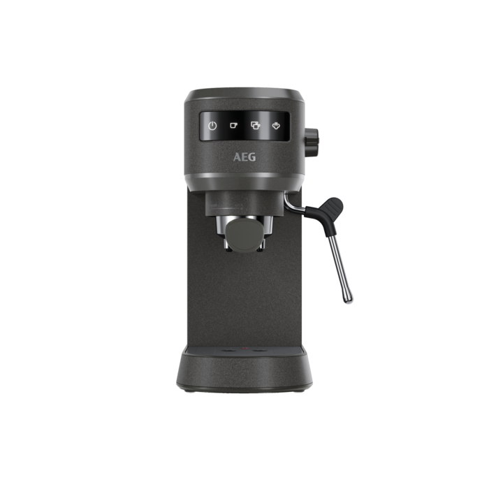 Maquina de café espresso Gourmet 6 de 14 cm de ancho y color gris antracita con pantalla táctil, 1 litro capacidad en el depósito de agua, tazas de hasta 12 cm de alto, bandeja antigoteo, 15 bares de presión, espumador de leche, apagado automático y calentador de tazas