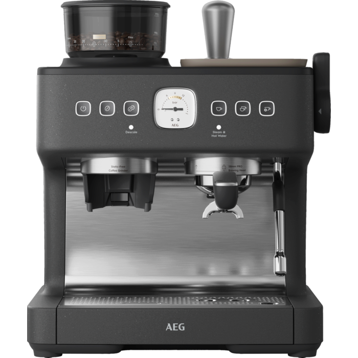 Máquina de café espresso de la Serie 8000 con tecnología de molido, 2200 W, 20 bares de presión, selector de vapor, capacidad del tanque de agua 3 litros, capacidad de deposito de café 250 gramos, 2 tazas, cable 0,8 metros, negra