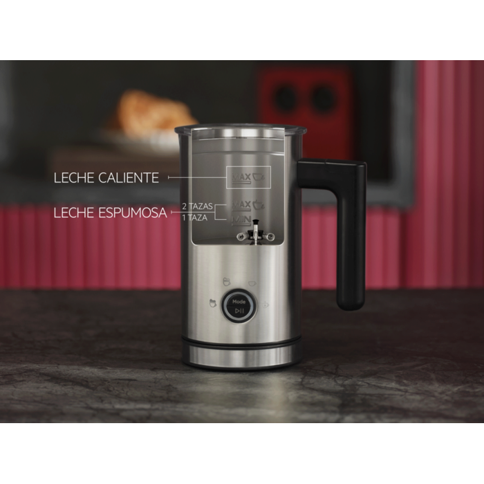 Espumador de leche de 500 W de potencia y una capacidad máxima de 150 a 300 ml, volumen total 600 ml, longitud del cable 0,85 m, acero inoxidable