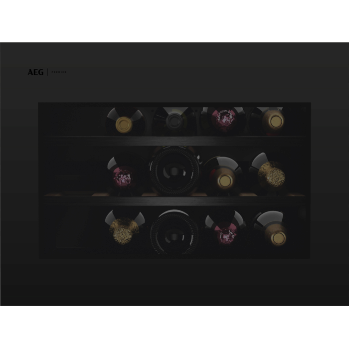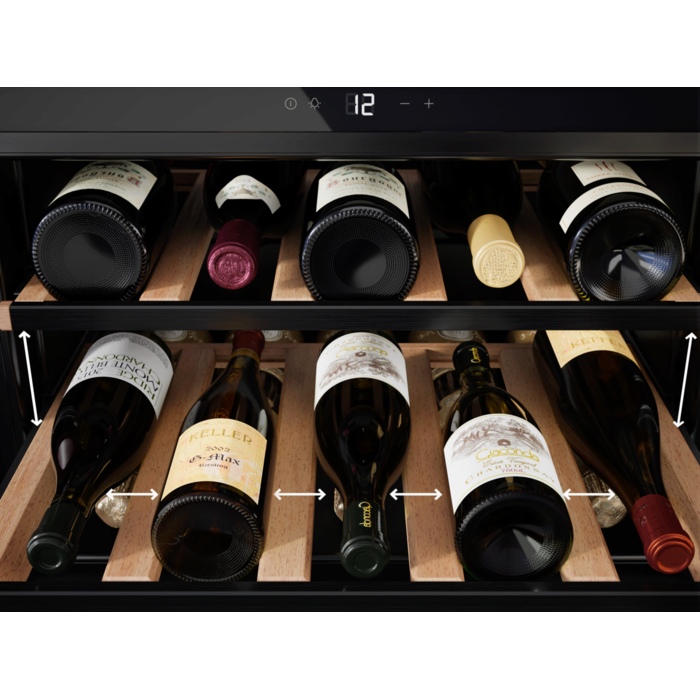 Vinoteca compacta integrable de la Serie 8000 Perfect Shelving de 45 cm, con apertura de puertas abatible sin tirador, 3 estantes para 15 Botellas, carriles telescópicos, cristal negro mate