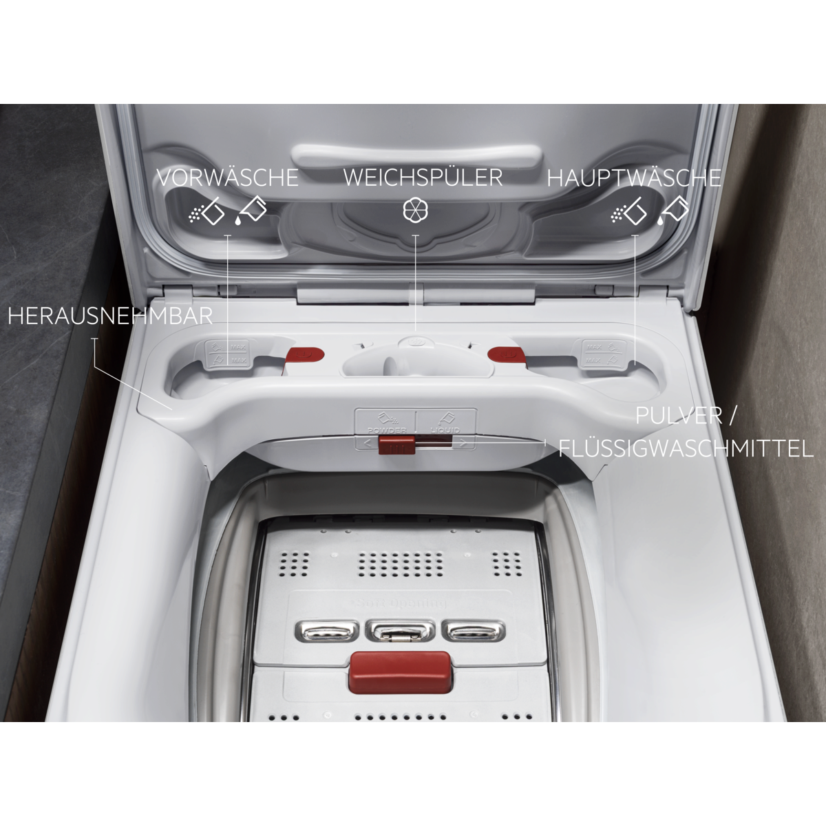 FlexiDose Plus. Fácil de usar y de limpiar. Para detergente líquido o en polvo