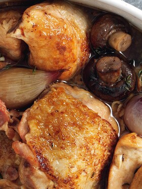 Los clásicos franceses no tienen por qué ser complicados. Esta receta aúna sabores intensos gracias al vino tinto, y el pollo mejor si es fresco para que quede más jugoso.