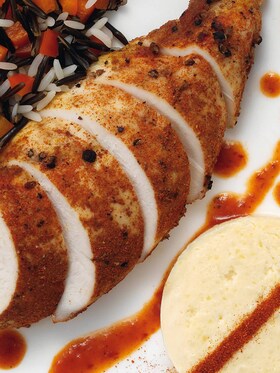 - Sazonar las pechugas de pollo con el pimientón, el curry, el aceite de oliva, la sal y la pimienta. A continuación, disponer las pechugas en una bandeja asadera engrasada y cubrir con papel de aluminio.